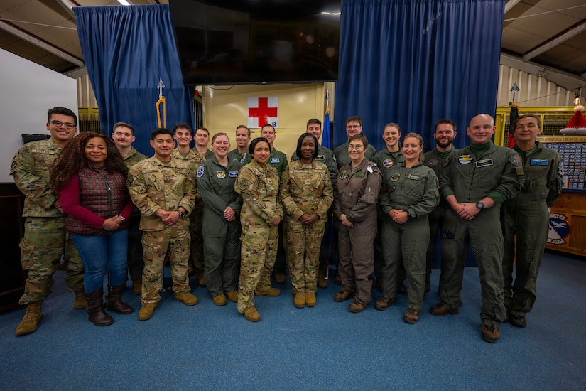 Inside a static C-130J Super Hercules aircraft, airmen assigned to the 86th Aeromedical Evacuation Squadron joined NATO partners from the Royal Netherlands Air and Space Force in a subject matter exchange at Ramstein Air Base, Germany, designed to enhance interoperability and strengthen medical evacuation capabilities.